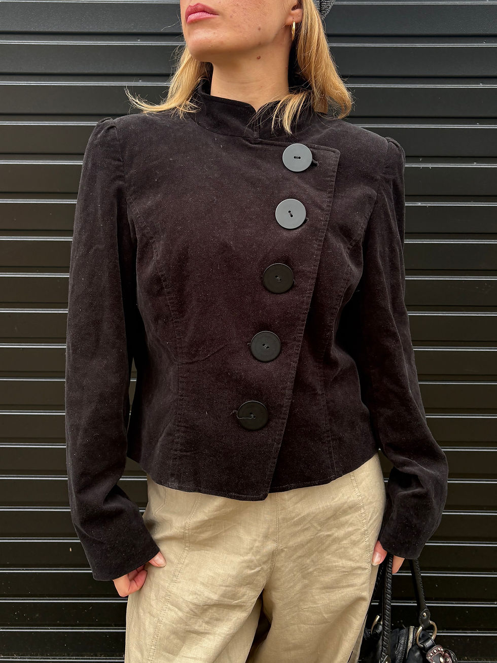 Black Asymmetric Velvet Jacket